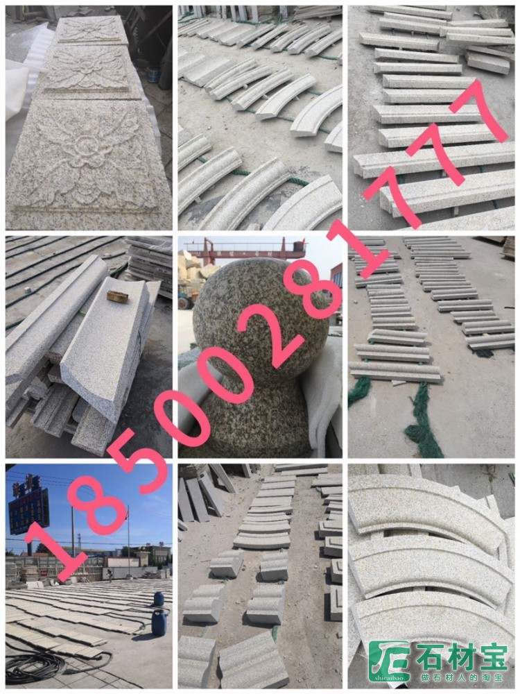 18500281777 黄金麻、白麻、灰麻、芝麻黑、内蒙卡麦、卡拉麦里金、海洋红、石榴红、章丘青、章丘黑、芝麻白、樱花红、晶白玉、高难度异型、蘑菇石、挡车石、广场园林工程、并且可生产腰线、石线、花线、檐线、圆柱、罗马柱、墓碑石、石材花盆、石子、沙、等石材异型